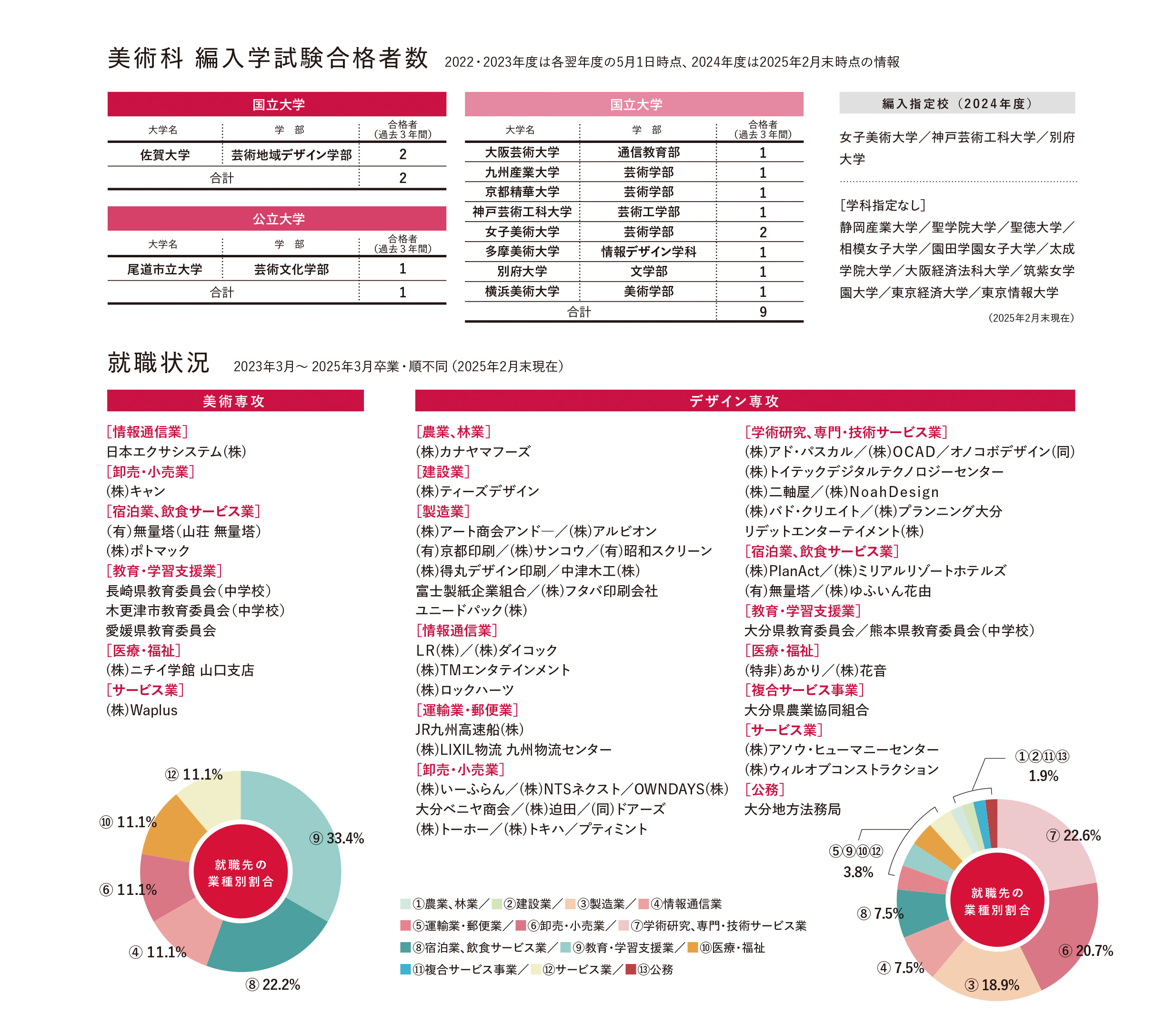 [※専攻科造形専攻も含む。(2023年~2025年3月卒業・順不同)]