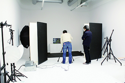 広い室内では、デザインに必要な素材写真を一眼レフで撮影したり、ストロボを使った人物撮影やグリーンバックを使ったクロマキー合成などが可能です。照明機器も備え、さまざまな創作撮影に利用できます。