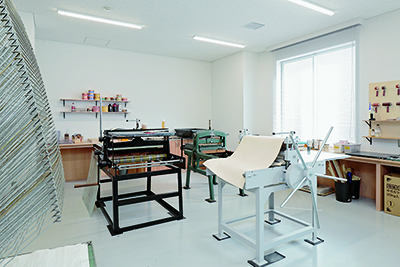 シルクスクリーン、リトグラフ、エッチングなど、印刷技法を用いたグラフィックアートの作品制作ができる環境になっています。