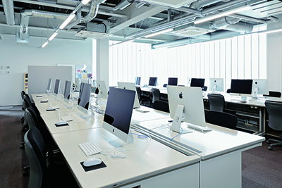 現代のデザイン表現には欠かせないDTP・3DCG・2Dアニメーション等のソフトが充実。放課後や休日も開放しているので、学生が自発的に利用できます。