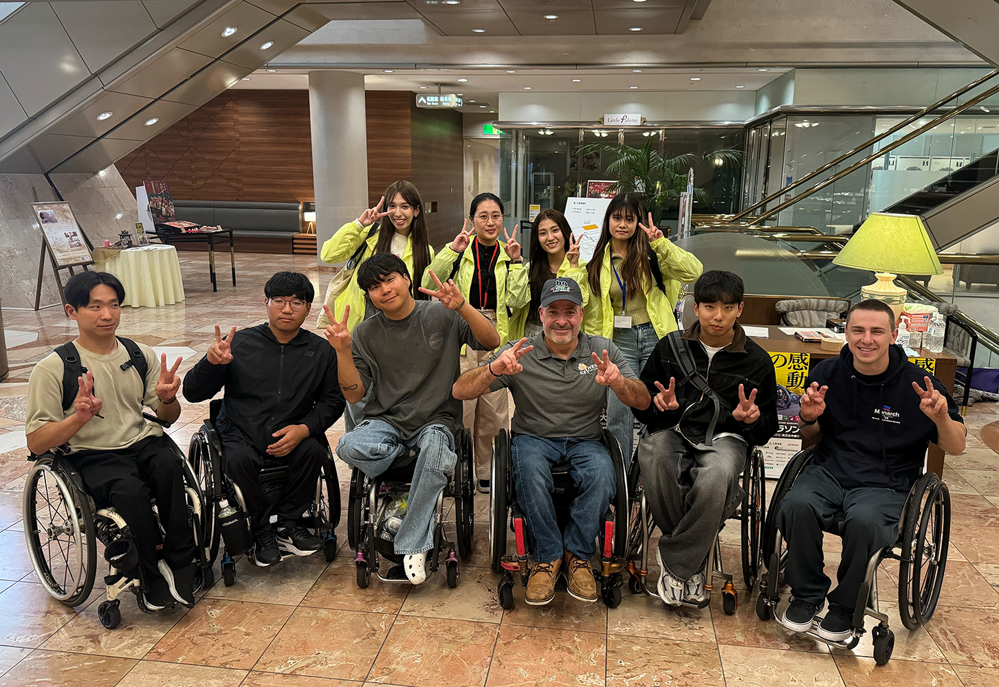海外選手の大分滞在中の通訳や付き添い、大会当日の進行をサポートをしています。参加前には研修会に参加し、車いす競技や車いすの取り扱いなどを学びます。