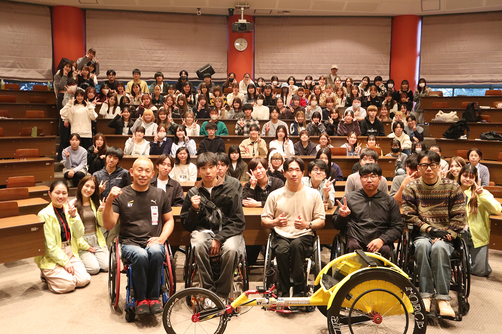 また、この大会に合わせ本学で交流イベントを開催し、参加選手を招いて講演会などを行っています。