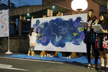 芸文短大は、毎年このまつりに参加してきました。今年は国道197号線国宗交差点の地下道付近に東ステージをつくり運営しました。美術科2年の松本江里加さんによるライブペインティング、芸短ダンスサークル、芸短卒業生の矢野順也さんのジャグリングや、地元のJ☆DANCE、スタジオALMAさん、ミスユニバース大分県代表などが参加しました。