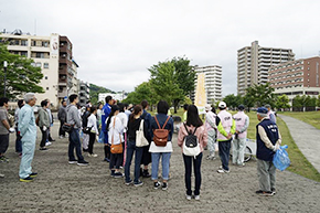 5月13日、サービスラーニングで、大分いこいの道芝生広場の美化活動に本学から7名の学生が初めて参加しました。