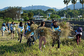 *サービスラーニングとは、学校で学んだことを地域で活かす、地域で活動することで学びの意義を確かめようとする、本学の特色ある教育プログラムです。本学では、情報コミュニケーション学科の専門教育科目として、他学科では共通教育科目として、毎年200名を超えるたくさんの学生が30時間以上の活動を行い、レポートを提出して、単位を修得しています。