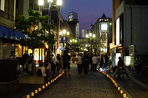 約千個のキャンドルが五番街の通りに並べられ、府内五番街の石畳にやさしい灯りをともしました。