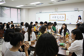 1日目は本学学生との交流会が開催されました。軽食と音楽で歓迎し、和やかなムードの中、日本語と韓国語を交えてにぎやかに会話を楽しんでいました。