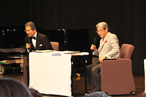 第二部は宮本名誉教授と可児敦彦氏による特別対談「意外・瀧廉太郎の“思い残し切符”」にて、瀧廉太郎が明治という時代の中でどのように音楽家として台頭していったのか、彼が日本の音楽の早期教育へ込めた思いなどを徹底討論。宮本名誉教授は瀧廉太郎が23年の生涯を終える間際に作曲したピアノ曲「憾(うらみ)」にまつわる考察を熱弁しました。