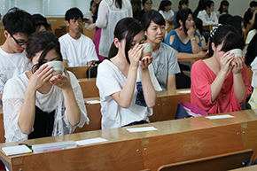 今回の茶道体験で初めてお抹茶を飲んだという学生が多く、「抹茶がこんなに美味しいものだとは思わなかった」といった声や、「茶道の所作や先生の立ち居振る舞いがきれいだった」という感想なども聞かれました。