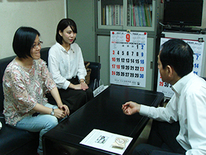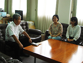 杉本さんは本学中山欽吾学長、国際総合学科 朴貞蘭准教授、久々宮司朗事務局長を訪れ、釜山外国語大学での留学生活や、日本で就職した現在の様子を語ってくれました。