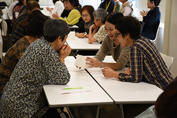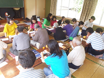 藤目自治会敬老会にidealサークルの学生9名が参加して絵手紙のワークショップを行いました。