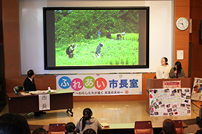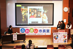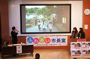 この「ふれあい市長室」は大分市長と学生の意見交換を通じ、大分市政をはじめとする地域社会への理解を深めることを目的として、今年度大分市が市内の大学と高校で実施しているものです。