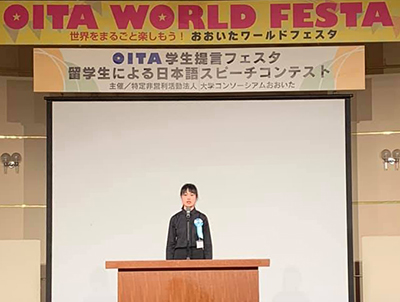 10月26日(土)、コンパルホールで開催された「OITA学生提言フェスタ~留学生による日本語スピーチコンテスト」において、本学国際総合学科の留学生・胡芷芊(こ・しせん)さんが最優秀賞を受賞しました。