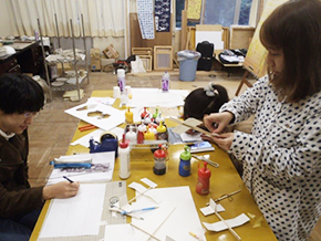 竹田市直入町の「竹田キャンパス」ではゼミやサークルでの合宿、創作活動の拠点として活用されています。また、本学で染色を指導している非常勤の前田亮二講師が常駐し、アトリエとして染色の創作活動を行うほか、学生への指導や地域との交流に取り組んでいます。