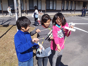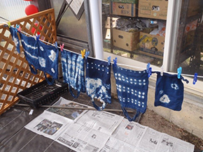 ワークショップとして藍染体験と、割りばしグライダー作りを行いました。去年は1日の参加でしたが、今年は開催日3日間のうち2日間参加致しました。割りばしグライダー作りは、子ども達に大人気でした。素材は簡単なものではありますが、皆それぞれにデコレーションを加えカラフルな楽しいグライダーがたくさん仕上がりました。出来上がったグライダーを飛ばして遊ぶ広場もありますので自然豊かな久住で子ども達は楽しく遊んでおりました。
