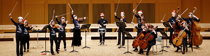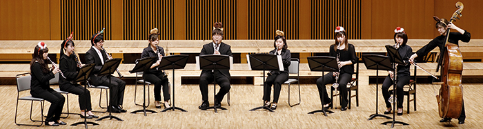 12月13日(水)、「管弦打コース演奏会~師走に心温まるひとときを~」をiichiko総合文化センター音の泉ホールで開催しました。この管弦打コース演奏会は、本学音楽科管弦打コース在学生によるアンサンブルと音楽科ウインドオーケストラの演奏を披露するコンサートです。今年度は芸術緑丘高校の音楽科の生徒さんたちも一緒に出演してくれました。