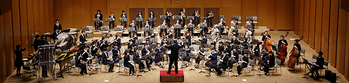 プログラム5番は吹奏楽による「吹奏楽のための第2組曲ヘ長調/G.ホルスト」、「シアター・ミュージック/P.スパーク」、「イェルサレム賛歌/A.リード」を森口真司教授の指揮により披露しました。芸術緑丘高校音楽科の皆さんも一緒にこの日のために練習を重ね、音楽の壮大さにのまれることなく、素晴らしい演奏を披露してくれました。