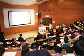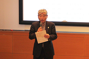 まず吉良伸一教授がサービスラーニングの意義について、サービスを提供した人からのフィードバック「リフレクション考察」の重要性を講じ、サービスラーニング立ち上げからこれまでを振り返りました。