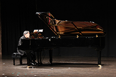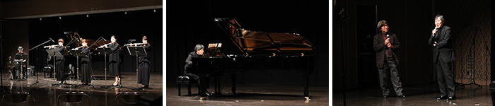 平成元年に本学音楽科に着任した河野教授は作曲を専門とし、今回の演奏会は音楽科ピアノコース石山聡准教授との「現代音楽を生演奏で聴いていただきたい」という思いから実現したそうです。石山准教授や音楽科の学生をはじめ、現在はプロの演奏者として第一線で活躍する卒業生などが出演し、河野教授が学生時代から現在までに作曲した作品の数々を演奏しました。