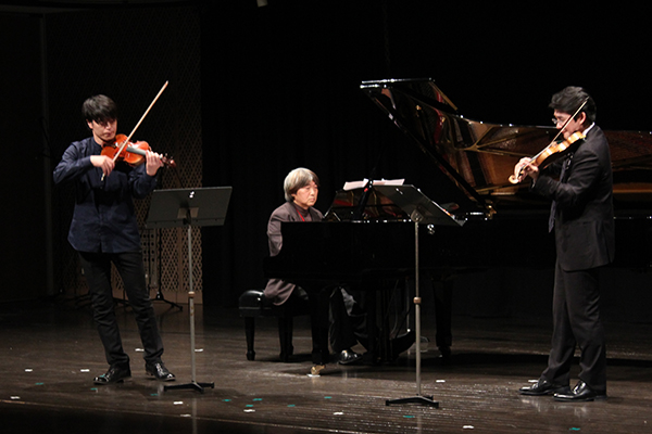 プログラム終了後のアンコールでは河野教授がピアノを演奏。ヴァイオリンとピアノによる、おだやかでどこか情緒的な空気に開場は包まれました。