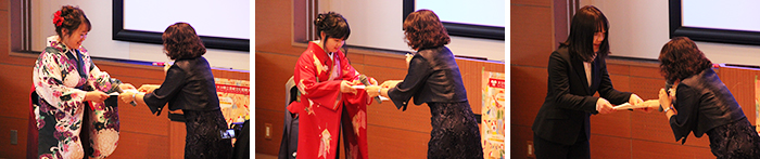 卒業と同時に栄えある学生表彰を受け、より晴れやかな表情を見せる卒業生たちでした。今回の表彰が、今後の一層の自信につながることと期待しています。