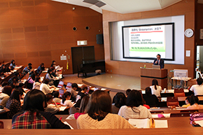 国際ボランティア論で「緑の大地の会」理事長による講義を行いました