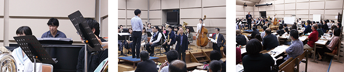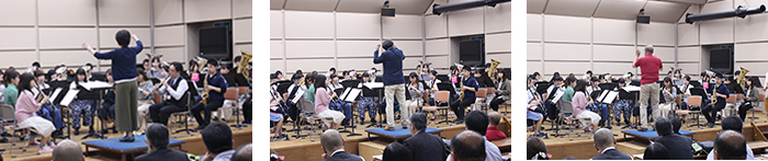 この指揮法講座は、吹奏楽コンクールの課題曲を題材に、実際に中学・高校吹奏楽の指導者が公開リハーサルを行い、音楽科の講師陣と共に現場で生じる様々な問題を考察する講座です。