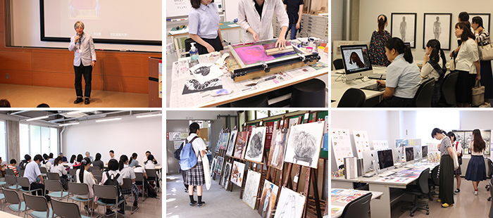 ・学科、専攻、コース、入試、授業風景、課外の取り組みの紹介 ・施設見学 ・ワークショップ ・個別入試相談会