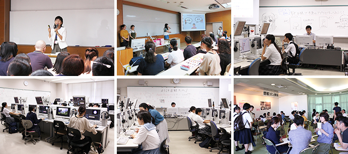画像編集ソフトの実習や、スマートフォンアプリの制作を体験していただきました。在学生との対話では、みなさん楽しいキャンパスライフへの夢が膨らんだようでした。