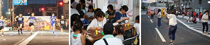 開催の2か月前から、恒例となった「国道1BAN」(49.723mの短距離走)の会場設営の打ち合わせや、エンタメバトルの横断幕とインスタパネルの作成、子供向けワークショップ(スライム作成、エコキャップを使った帽子作り)の準備に取り組んできており、また、地元の皆さまと協力をして、会場設営の支援なども行い、当日のイベントに臨みました。