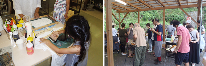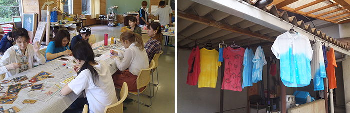 竹田市直入町の「竹田キャンパス」はゼミやサークルでの合宿、創作活動の拠点として活用されています。また、本学で染色を指導している非常勤の前田亮二講師が常駐し、アトリエとして染色の創作活動を行うほか、学生への指導や地域との交流に取り組んでいます。
