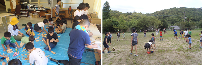 下竹田地区の子ども会が今年は竹田キャンパスで行われました。工作、料理、スイカ割、花火等、夏の思い出として存分に楽しんでおりました。廃校になった小学校に子ども達の声が響き渡る。いいもんです。