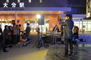 12月31日の大晦日は大分駅南口で、APUベトナムからの留学生によるバンブーダンス。狩野泰一氏(東京都生まれ佐渡島在住篠笛奏者。「鼓動」のメンバーとして各地で活躍、1997年に独立、臼杵(野津)出身で急逝した塩屋監督の「種をまく旅人」などの音楽監督を務めた)の篠笛演奏。本学ダンスサークルのダンスなどを披露しました。