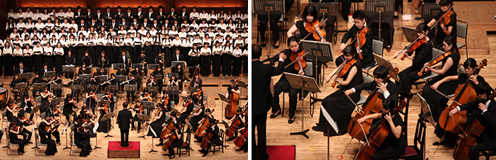 今年のプログラムはフランスの作曲家の楽曲のみで構成し、ソリストはオーディションで選出されたピアノコースの学生らが務めました。