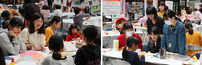 本学から参加した学生は、2日間を通じて環境に関するワークショップ(ペットボトルキャップを使った帽子とコマ作り)を行いました。また、2018年の赤い羽根の共同募金応援プロジェクトも開始しました。今回の活動を通じて、社会貢献力およびコミュニ―ケーション力の向上を図りました。