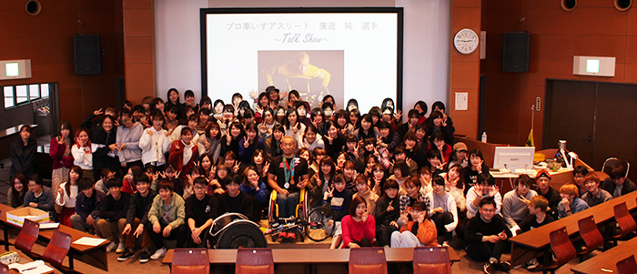 10月26日(金)、本学人文棟大講義室にて「大分国際車いすマラソン大会 第9回交流イベント 廣道純選手 TALK SHOW」(「多文化理解論」公開講義)を開催しました。