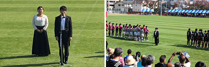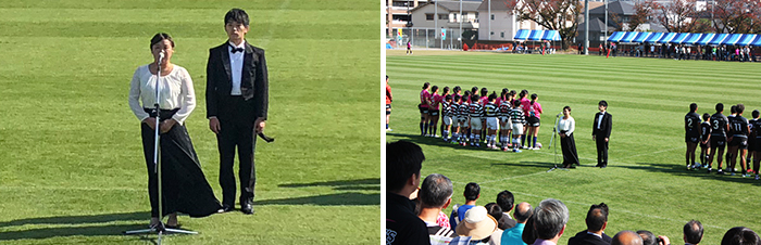 7人制ラグビー親善試合で本学学生が国歌を独唱しました
