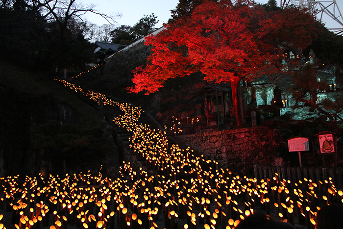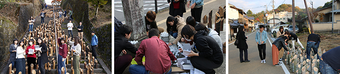 過疎化と高齢化の進む竹田市では、増殖する竹の伐竹が課題となっており、竹を活用した観光イベントとして今年で19回目の開催となりました。学生は3日間の活動で、廣瀬神社の竹灯篭の蝋燭交換と点火、市内の各会場における点火作業の支援などを行いました。