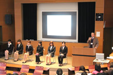 実際に就職活動を行い、見事内定を獲得した先輩方の意見は、これから就職活動を行う上で不安に思っていることや疑問に感じていることがたくさんある1年生にとっては、とても貴重なものとなったようでした。