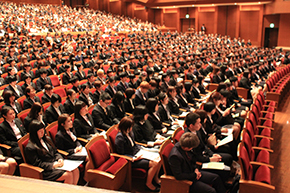新入生は、大分県の芸術文化発信拠点のひとつであるグランシアタにおいて、期待に満ちた表情の新入生が教職員に迎えられ新たなスタートをきることになりました。