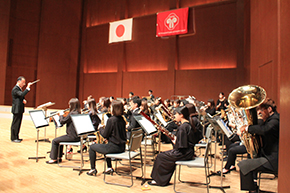 開会に先立ち、音楽科の在校生が演奏する真島俊夫作曲「ウェルカム」、フィリップ・スパーク作曲「ジュビリー序曲」、郷間幹夫作曲『コンサート・マーチ「虹色の未来へ」』、宮川成治編曲「J-BEST 桜ソングメドレー」吹奏楽で、新入生を歓迎し、新入生たちは先輩たちの迫力ある演奏を熱心に聴き入り、凛とした空気の中で式は進行されました。
