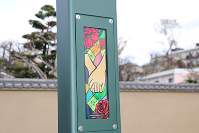 大学の周辺には大友宗麟に関連する遺跡が多数存在しており(上原館など)、そのために大分市の事業として、大学の周りに設置されることになりました。今回、大学周辺に新たに設置された街灯に10基にそれぞれ学生がデザインしたステンドグラスがはめ込まれました(街灯4基が追加設置予定)。昨年12月に「南蛮BVNGO交流館」を学生が訪問し、当時の南蛮文化や大友宗麟の歴史を学び、これを基にして学生がデザインしたものです。是非、大学にお越しの際にはご覧ください。