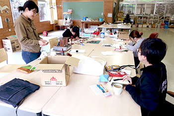 竹田市直入町の「竹田キャンパス」はゼミやサークルでの合宿、創作活動の拠点として活用されています。また、本学で染色を指導している非常勤の前田亮二講師が常駐し、アトリエとして染色の創作活動を行うほか、学生への指導や地域との交流に取り組んでいます。