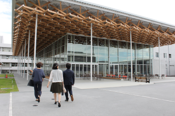 7月11日、兄妹ピアノデュオ「Die Sonne」(ディ・ゾンネ)の宮﨑 大介(みやざき・だいすけ)さん、宮﨑 陽子(みやざき・ようこ)さんが来学し、川瀬音楽科長の案内で音楽ホール棟を見学しました。