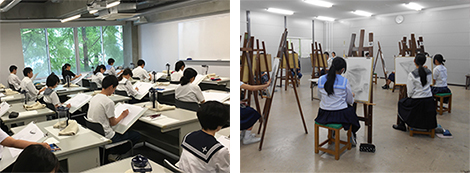 また、美術科と音楽科では夏期講習会を実施しました(音楽科は両日開催)。受験に向けた実践的な講習を受け、時間一杯技術や知識を吸収しようとする姿が印象的でした。