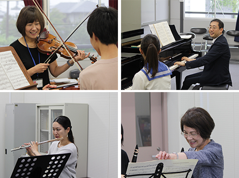 7月13日(土)、14日(日)の二日間において開催されました。受講生たちは音楽科教員のきめ細かなレッスンを真剣な表情で受講していました。