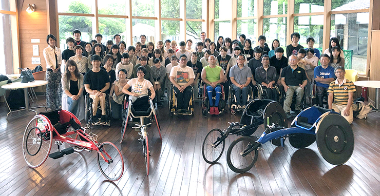 ⽥ノ浦の国道沿いで年中練習している県内の選⼿の⽅々と⼤分国際⾞いすマラソン通訳ボランティアCando( キャンドゥ)のメンバーの皆さまに、⾞いす(デイリーチェアとレーサー)の運び⽅や障害を持つアス リートのサポートの仕⽅などについて、ご指導をいただきました。
