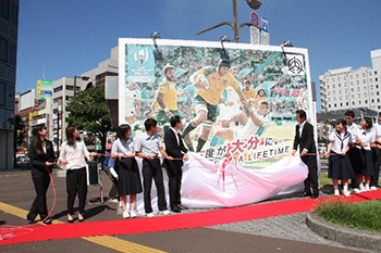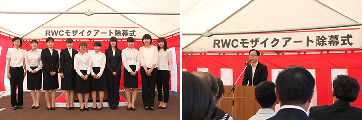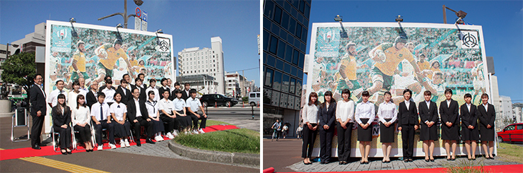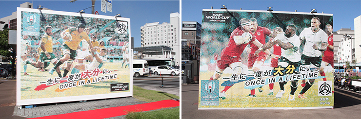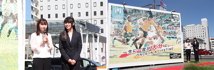 9月17日(火)、大分市街地の駅前においてラグビーワールドカップをモチーフとした巨大モザイクアート除幕式が行われました。