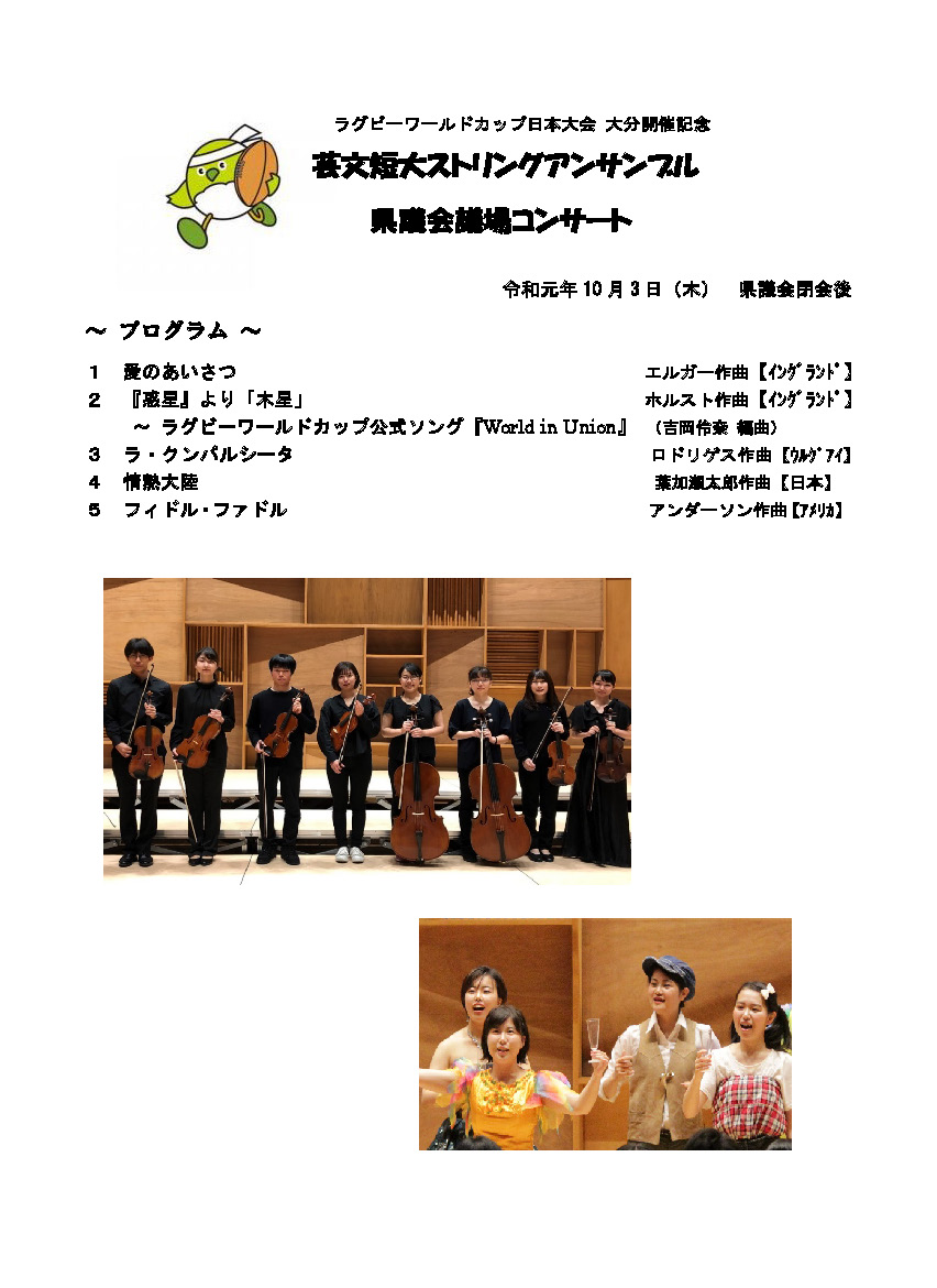 県議会傍聴席にて演奏を聴くことができますので、 どうぞおいでください。