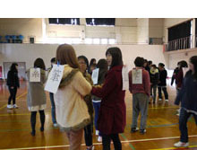 そのほかにも、並び替えや動作の伝達などのグループワークを行いました。学生からは、ふれあいを楽しめた、自分が以外と人見知りでなかった、協力が大切だと気付いた、という感想が聞かれました。